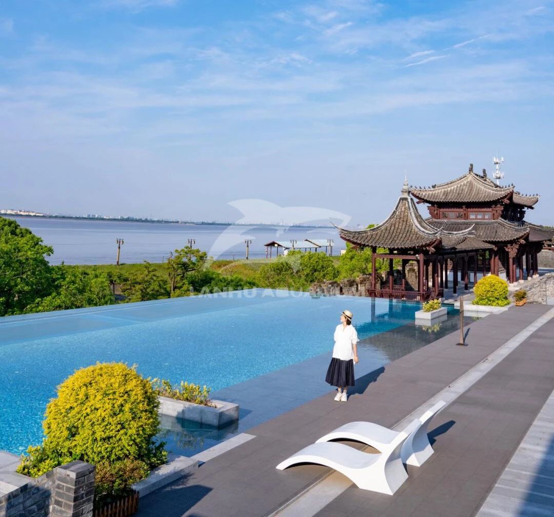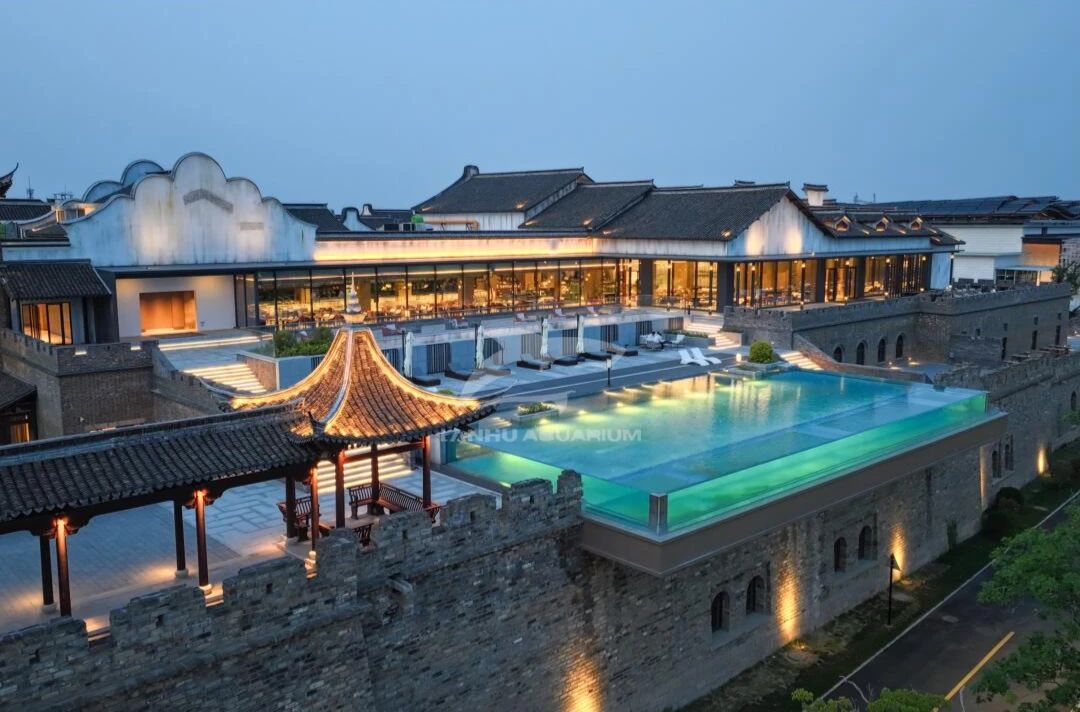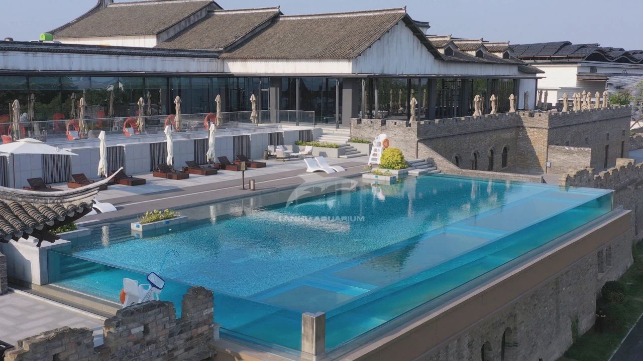 【藍湖工程案例】重磅!藏在3000畝古城里的無邊泳池,浙江鹽官亞克力透明泳池掀高潮 |