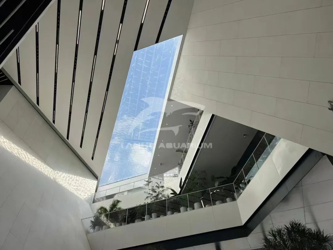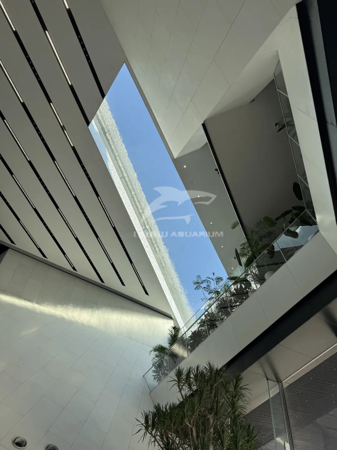 當你駐足當前抬頭仰望,天空上方亞克力筑造的透明魚池,魚兒在其中自由穿梭,這一刻建筑不再只是冰冷的建筑,而是自然與科技共融的沉浸式場所。