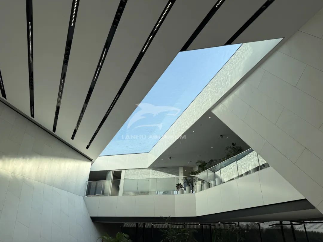 上海藍湖水族工程有限公司打破風格界限,為太平鳥總部特別定制打造屋頂魚缸帶來美學變革,以海洋美學的浪漫為魂, 融現(xiàn)代奢華,精準契合當代精英對生活質感的追求。