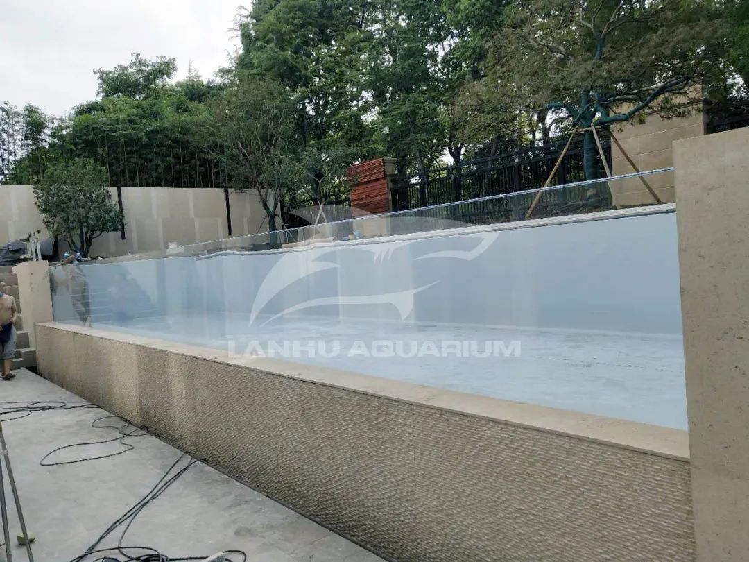 面對此次九龍倉國賓1號項(xiàng)目的需求,藍(lán)湖水族通過分析客戶的切身需要,并結(jié)合本公司專利生產(chǎn)技術(shù),將長12米 采用100毫米厚亞克力板材制作的無邊界泳池呈現(xiàn)在眾人眼前, 以此延續(xù)蘇州,千百年永不落幕的高瞻遠(yuǎn)止、高昂血統(tǒng)、高貴氣質(zhì)。