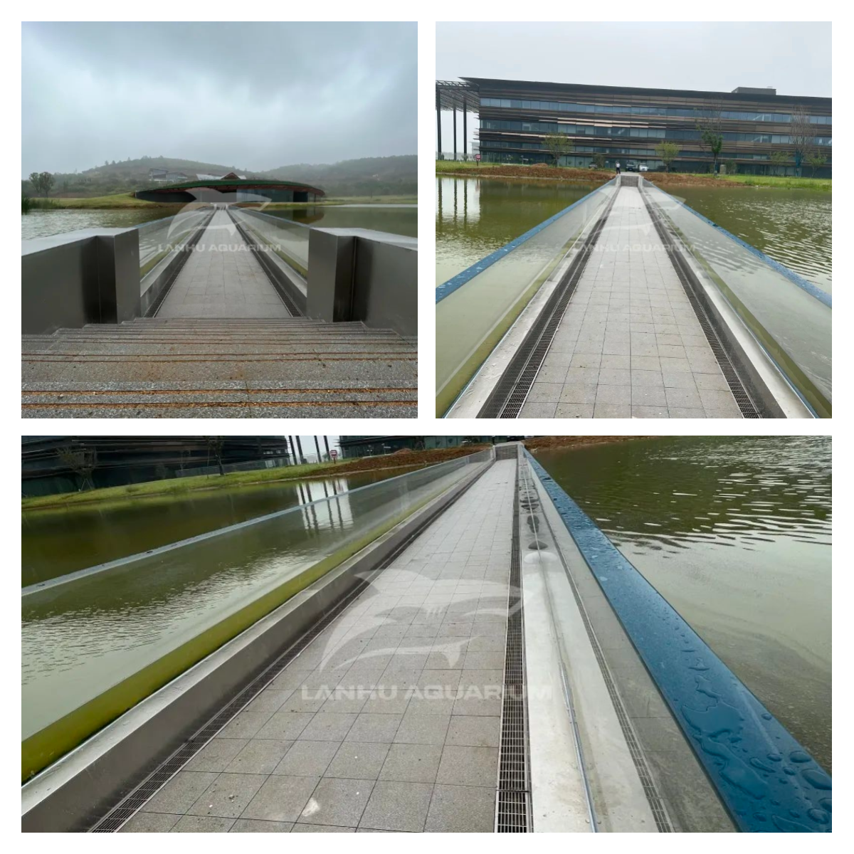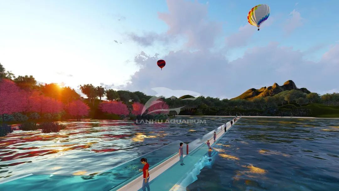 鳳棲湖亞克力棧橋是藍(lán)湖水族特別為溧陽(yáng)科創(chuàng)基地規(guī)劃設(shè)計(jì),景觀橋與鳳棲湖風(fēng)景相得益彰。全透明的亞克力面板打造的橋梁增加游客觀賞美景的視野同時(shí), 其張力結(jié)構(gòu)更展現(xiàn)出橋梁的力度美和結(jié)構(gòu)美,全玻璃景觀橋與波光水面完美融合,當(dāng)人們?cè)跇蛏献哌^,就如同在水中漫步